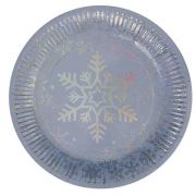Тарелки диаметром 23см, в упаковке 8 штук. Снежинка с голографический эффектом, искрится и переливается. Сочетается с другими элементами коллекции.