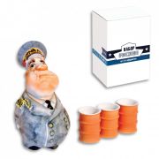 В состав подарочного набора входит фарфоровый штоф в виде Генерала и три стопки.