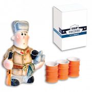 В состав подарочного набора входит фарфоровый штоф "Солдат Чонкин" и три стопки.