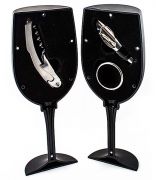 Набор принадлежностей для правильного обращения с вином теперь доступен не только сомелье. Футляр в виде бокала на изящной ножке разделён на две части, в одной из которых хранится универсальный штопор-нож-открывалка, во второй – кольцо для сбора капель и воронка-рассекатель. Инструменты вставляются в бархатный ложемент, футляр имеет магнитную застёжку.