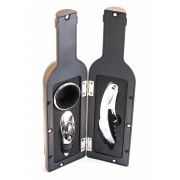 Набор принадлежностей для правильного обращения с вином теперь доступен не только сомелье. Футляр в виде бутылки разделён на две части, в одной из которых хранится универсальный штопор-нож-открывалка, во второй – кольцо для сбора капель и воронка-рассекатель. Инструменты вставляются в бархатный ложемент, футляр имеет магнитную застёжку.