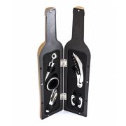 Набор принадлежностей для правильного обращения с вином теперь доступен не только сомелье. Футляр в виде бутылки разделён на две части, в одной из которых хранится универсальный штопор-нож-открывалка, во второй – кольцо для сбора капель и воронка-рассекатель. Инструменты вставляются в бархатный ложемент, футляр имеет магнитную застёжку.