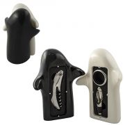 Популярные керамические фигурки, изображающие дружелюбие, скрывают внутри удобный набор для вина. В набор входит универсальный нож-штопор-открывалка, кольцо для сбора капель, рассекатель-дозатор.