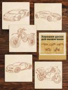 Набор из 5 деревянных заготовок понравится мальчикам, которые увлекаются выжиганием или раскрашиванием. На каждую из досок нанесены контурные изображения крутого транспорта. Доски выполнены из качественной березовой фанеры. Поверхность отлично отшлифована, ровная, без шероховатостей и зазубрин. Работа с набором заготовок тренирует мелкую моторику, развивает усидчивость, внимательность и аккуратность.
