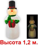 Надувная фигура "Снеговик с блестящим подарком", 1,2м