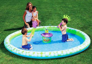 Возьня в бассейне сопровождается феерическим зрелищем: из центра бассейна вырывается фонтан мыльных пузырей, сверкающих и переливающихся на солнце всеми цветами радуги! Для этого нужно всего лишь подключить садовый шланг и подать воду. Генератор мыльных пузырей работает также как маленький фонтанчик. В центре бассейна есть надуной постамент с отвестием в центре, на него нужно установить машинку, а садовый шланг подвести под бассейном. Но радость детворы была бы не полной без огромных надувных ЛАДОШЕК, которыми так славно шлепать по воде и лопать пузыри! Нежно голубой бассейн со сверкающим на солнце снопом мыльных пузырей не только доставит радость малышам, но будет украшением участка вашего загородного дома.