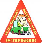 Наклейка на авто "Осторожно! Резко торможу! Берегите зубы!".