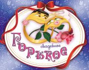 Наклейка на бутылку "Свадебное горькое" (кольца на тарелке)