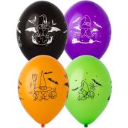 Высококачественный шар из натурального латекса. Черные, оранжевые, зеленые, фиолетовые шары, с четырехсторонним - круговая печать, шелкографическим рисунком - Гномы Хэллоуин.