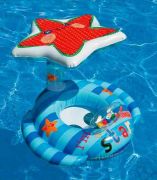 Снабжен специальным навесом Звездочкой, который защитит от попадания прямых солнечных лучей. Основание круга выполнено в форме трусиков, куда малыш может продеть ножки, чтобы чувствовать себя комфортно и безопасно, находясь в воде.