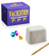 В наборе: брусок с артефактами внутри (находки из пластика в форме бриллиантов), деревянный стек длядробления.