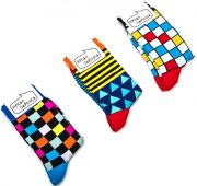 Комплект носков с актуальным цветным принтом. Классический или ироничный, яркий или приглушенный-рисунок на наших носочках не оставит равнодушными модниц и модников. В наборе три пары носков с разным рисунком. Носки изготовлены из натурального волокна с добавлением эластичных синтетических нитей и упакован в прозрачный пакет.