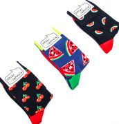 Комплект носков с актуальным цветным принтом. Классический или ироничный, яркий или приглушенный-рисунок на наших носочках не оставит равнодушными модниц и модников. В наборе три пары носков с разным рисунком. Носки изготовлены из натурального волокна с добавлением эластичных синтетических нитей и упакованы в прозрачный пакет.