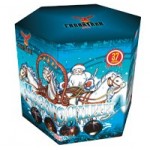 Эффект: Двухуровневый эффект: на нижнем уровне золотое мерцание тысячи хризантем, на верхнем уровне мерцающие кокосы с синими жемчужинами. В финале залп нескольких зарядов.