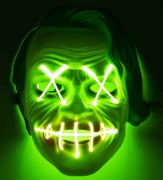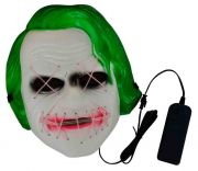 Неоновая маска выполнена из качественного ПВХ пластика. Она светится ровным ярким светом, придает маске загадочный, устрашающий вид. Выйдете на улицу, Вы точно не останетесь без внимания. Подсветка управляется специальным пультом с клипсой. В пульт устанавливаются 2 батарейки АА. На выбор 3 режима: свечение, медленная вспышка, стробоскоп. Мягкий свет не напрягает глаза даже при быстрой вспышке. Маска достаточно крепкая, подсветка не выделят тепла. Универсальный размер.