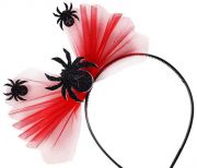 Карнавальный головной убор. Пауки из фоамирана черного цвета с покрытием глиттер на ободке с красным фатином. Стильное дополнение к карнавальному образу для вечеринки на Хэллоуин.