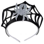 Карнавальный головной убор. Ободок в форме паутины черного цвета с пауком из фоамирана серебряного цвета с покрытием глиттер. Стильное дополнение к карнавальному образу для вечеринки на Хэллоуин.