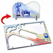 Яркая и красочная открытка с вынимающимися деталями, которые собираются в оригинальную визитницу. Она станет отличным подарком для людей, ценящих сочетание красоты и функциональности.