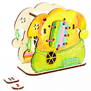 Озорной колпак - объемный конструктор, в котором есть настоящие пуговицы (их можно привязать к домику нитками)!  кроме того можно разукрасить игрушку фломастерами, красками и карандашами на свой вкус. Домик является еще и подставкой для канцелярских принадлежностей!
