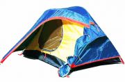 Двухслойная палатка синего цвета с двумя входами - Два вентиляционных клапана - Все швы проклеены - Идеальна для туристических походов в весеннее, летнее и осеннее время