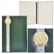 Папка, формат А4, квинель, объемное изображение герба республики Казахстана на декоративной ленте, с металлизацией