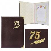 Папка на юбилей 75 лет – это: - достойное обрамление для поздравления с юбилеем – выполненная из качественных материалов с металлизированными выпуклыми цифрами знаменательной даты 75 и веточкой лавра, имеет солидный официальный вид - памятный знак, который юбиляр сбережет на всю оставшуюся жизнь - место для хранения поздравлений с юбилеем