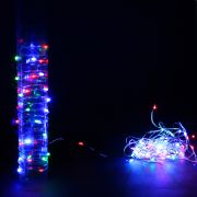 100 разноцветных мини-светодиодов "капелек" на тонком десятиметровом проводе серебристого цвета.