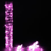 100 розовых мини-светодиодов "капелек" на тонком десятиметровом проводе серебристого цвета.