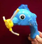 Пистолет-вентилятор в форме дельфинчика со светящимися лопастями и плавником. 2 режима работы: только свечение или свечение с музыкальным сопровождением.