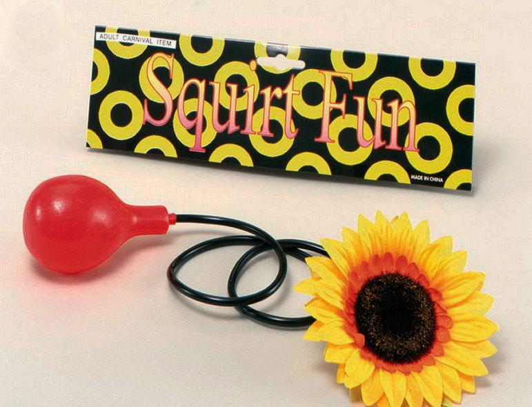 Подсолнух-брызгалка - это розыгрыш, ставший классическим. Предложите оценить запах этого необычного цветка и сожмите грушу с водой. Фонтан брызг осыплет любопытного друга.