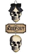 Подвеска из двух черепов и таблички с надписью KEEP OUT украсит вход на вечеринке Хэллоуин. Размер подвески: 22х48 см.