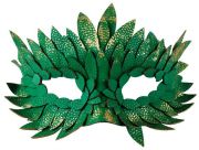 Зеленая полумаска с золотистыми вкраплениями по краям выполнена из качественного материала (кожзам). Дизайн маски напоминает чешую дракона. Маска отлично держит форму. Внутренняя сторона сделана из мягкого фетрового материала.