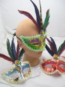 Полумаска с разноцветными перьями