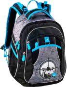 У рюкзака 2 основных отделения для учебников, тетрадей, блокнотов и других школьных принадлежностей. Спереди 2 кармана на молнии, по бокам сетчатые кармашки для бутылочки с водой. Рюкзак изготовлен из прочного износостойкого полиэстера с водотталкивающей пропиткой.