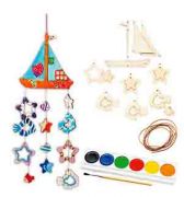 В наборе для творчества уже есть все необходимые материалы для создания украшения. Раскрасьте парусник по своему вкусу, украсьте его морскими звездами и красочными рыбками, а затем создайте оригинальный подвесной декор для интерьера или подарок близкому человеку. Деревянные заготовки, обработанные лазером, полностью готовы к работе. Краски из набора хорошо лягут на гладкую поверхность. Раскрашивайте фигурки с двух сторон и сочетайте разные идеи и дизайны в одном сувенире. Соедините детали композиции шнуром в любом порядке и создайте подвесное украшение, которого больше нет ни у кого.