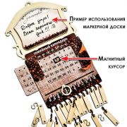 Сзади у нашего календаря есть специальное крепление. Для вашего удобства в комплект также входит дюбель, саморез, маркер для доски.