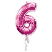 Шар в форме цифры 6 ярко-розового цвета высотой 86 см. Эффектное обозначение для дня рождения, и как часть даты для других дней рождений! Шар имеет встроенный клапан, что упрощает надувание. Тонкая миларовая фольга на полиэтиленовой основе пленка позволяет шарам не сдуваться от недели до одного месяца. Шар продается ненадутым.