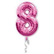Шар в форме цифры 8 ярко-розового цвета высотой 86 см. Эффектное обозначение для дня рождения, и как часть даты для других дней рождений! Шар имеет встроенный клапан, что упрощает надувание. Тонкая миларовая фольга на полиэтиленовой основе пленка позволяет шарам не сдуваться от недели до одного месяца. Шар продается ненадутым.
