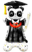 Большой, объемный фольгированный шар высотой 99 см в форме панды в шапочке выпускника. Данную фигуру можно использовать как самостоятельную декорацию для любого праздника. Шар рекомендуется надувать ВОЗДУХОМ.