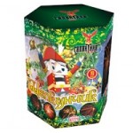 Эффект: Золотые кометы раскрываются мерцающими золотыми коронами со вспышками и красными и зелеными мерцающими звездами; в финале одновременный залп комет раскрывается золотыми коронами с трещащим пестиком.