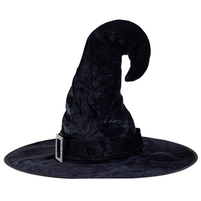 Шляпа ведьмы Люкс черная бархат (38 см)