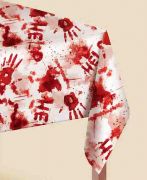 Прозрачная скатерть с кровавыми следами - отличное решение для жуткого Хэллоуина. Размер полиэтиленовой скатерти 140х260 см.