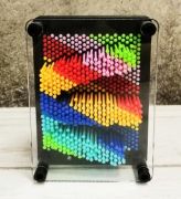 Достаньте скульптор из упаковки, выньте картонную прокладку, предохраняющую стержни, опрокиньте прибор таким образом, чтобы все гвоздики съехали на заднюю панель. Прибор готов к использованию. Теперь вдавите в поверхность, сформированную стерженьками, предмет оригинальной формы, и вы получите слепок предмета - забавные объёмные очертания