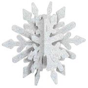 Резная объемная снежинка покрыта снежным глиттером. Прекрасный 3D-декор размером 22х20 см, снежинка выполнена из МДФ.