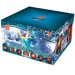 Эффект: Красные звезды и серебряные вертушки раскрываются красными хризантемами и трещащим эффектом тысячи хризантем; синие звезды раскрываются большими золотыми кокосами; в финале одновременный залп нескольких зарядов.