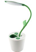 Светильник на гибкой ножке удачно имитирует горшечное растение. В углу верхнего листика расположена светодиодная лампа, помогающая работать за столом в тёмное время суток. Гнущийся стебель-ножка позволяет настроить освещение под нужным углом. В основании горшка находится ёмкость, которую можно использовать для хранения ручек, карандашей и других канцелярских мелочей. Светильник имеет возможность подключения к USB-порту вашего компьютера.