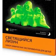 В комплекте: поливиниловый спирт (порошок), тетраборат натрия (порошок), глицерин, фотолюминофор, пластиковый мерный стакан, палочка для размешивания, перчатки, инструкция на русском языке