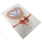 Обложка плотный картон, ламинирован плёнкой с типографской фотопечатью + тиснение золотистой фольгой (буквы). Внутри вклеен прозрачный файл для свидетельства. Размер А4