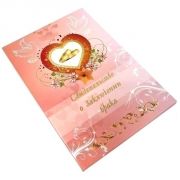 Обложка плотный картон, ламинирован плёнкой с типографской фотопечатью + тиснение золотистой фольгой (буквы). Внутри вклеен прозрачный файл для свидетельства. Размер А4