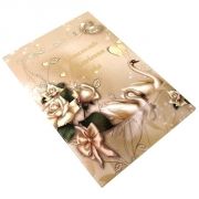 Обложка плотный картон, ламинирован плёнкой с типографской фотопечатью + тиснение золотистой фольгой (буквы). Внутри вклеен прозрачный файл для свидетельства. Размер А4